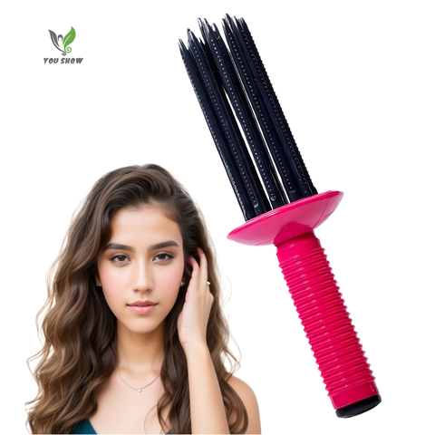 Peluquería de pelo rizado profesional, peine redondo de 17 dientes, cepillo de pelo rizado, moldeador de estilo, herramienta rizadora de pelo antideslizante